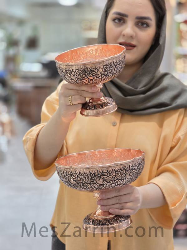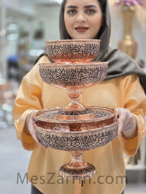 سرویس پذیرایی مسی گلدیس یکی از کارهای با کیفیت و با ضخامت ورق بالای مس ساخته شده است. سرویس مسی گلدیس دارای یک پوشش محافظ نانو و رنگ ثابت می باشد. قطر دهانه میوه خوری ۲۸ ، آجیل خوری ۲۳ ، شیرینی خوری ۲۶ و شکلاتخوری ۱۸ سانت می باشد. روی پایه و روی بدنه ظروف گلدیس قلم زنی شده و کف ظرف هم چکش کاری شده این کار باعث استحکام بیشتر ظرف و زیبایی آن را دوچندان کرده. شما میتونین ظروف گلدیس رو به صورت تک یا سرویس ۴ تیکه پذیرایی تهیه کنید